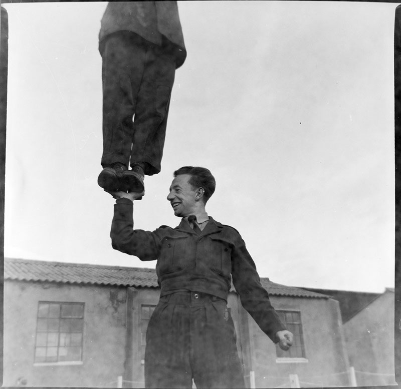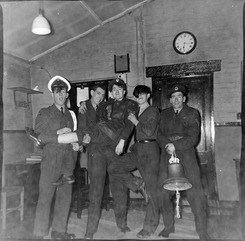 Cpl. Foote & N. Wright, handcuffedAnne, a.k.a. Ginger, N.A.A.F.I. girlAnne, Lillie & Lena, N.A.A.F.I. staffAstra Cinema - Woman on a boardAstra Cinema - Harry JamesAstra Cinema - Pardon My Sarong, with Abbott & CostelloAstra Cinema - Virginia Mayo & Bob Hope in Princess and the PirateAstra Cinema - Loves of Carmen, starring Rita HayworthAstra Cinema projection roomunknownAstra Cinema - The Card, with Alec Guinness, Valerie Hobson, Glynis Johns & Petula ClarkAstra Cinema - The CardAstra Cinema - The CardAstra Cinema - The CardCutting from the Astra GazetteG.B. News HeadingChurch of England altarCpl. Woolmore, A.O.C. Display of DefenceButler, Loten & RobertsCampbell, Shrubsole & JonesButler, Shrubsole & RobertsCpl. Hadaway’s son, sitting on a hydrantChildren outside Camera ClubAstra CinemaH. MacDonaldMacDonald, Woodhams & Malcom, “musclemen”MacDonald, Woodhams & Malcom, “musclemen”Woodhams takes a diveA. Henderson, in the ironing roomA. Henderson & DavidsonA. DavidsonA. DavidsonFlt/Sgt Sergent presentation of long service medalMorley, Mellor & Branson play cricket by No.20 P.T.C. billetsMorley, Mellor, Branson & SpiersB. Anderson, Jones & MarsdenB. Anderson, Jones & MarsdenN. Mellor, Duty N.C.O.N. RobinsonN. Robinson & McDougallJoyce, N.A.A.F.I. girl, Surprise!J. Liddle, hanging out of the window after the demob partyS. Baldwin, ablution corridorS. Baldwin, “drunk’S. BaldwinT. Mearns, dressed as a gangsterH. Currie, in billet 88Flt/Sgt Wilkinson loading a 3 ton crate<>