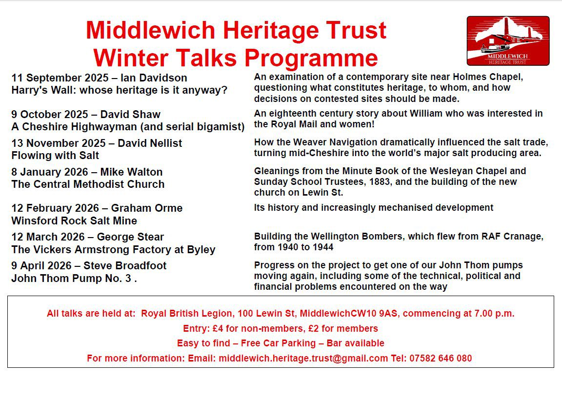 Middlewich Trails Leaflets are now available on line. To access them, please use the following links. Roman Trail Great War Trail