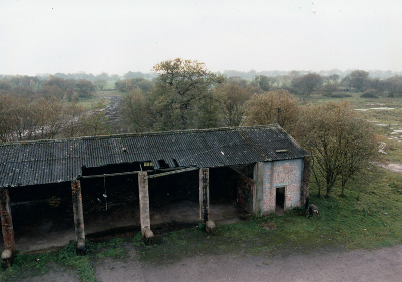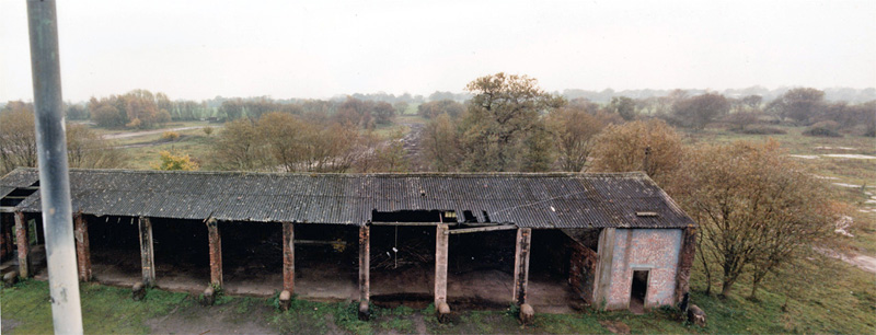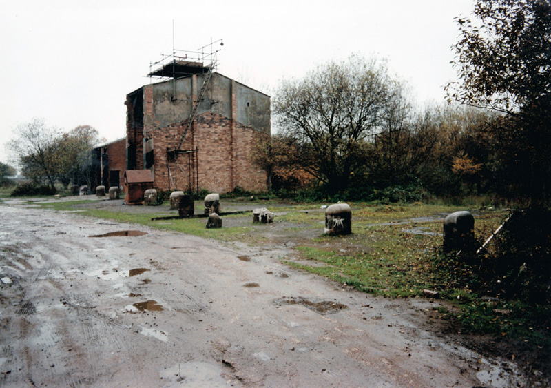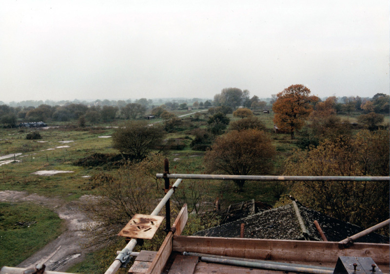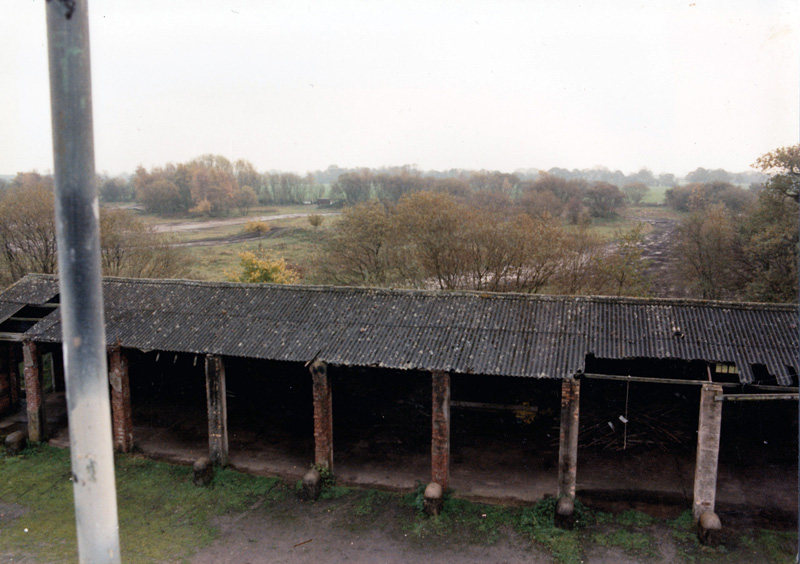 Looking south from the top of the north side of the Motor Transport compound. At the time of these photographs, the airfield was being used as a motorcycle scramble course. The Scaffolding was put up as a viewing platform for this purpose.