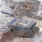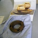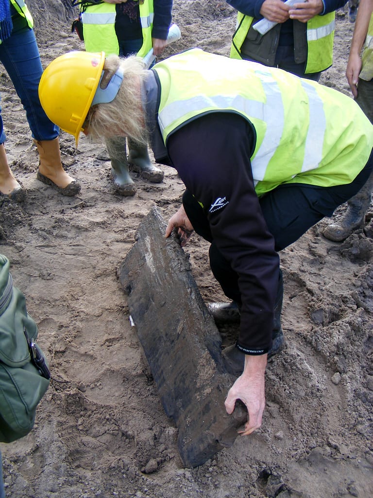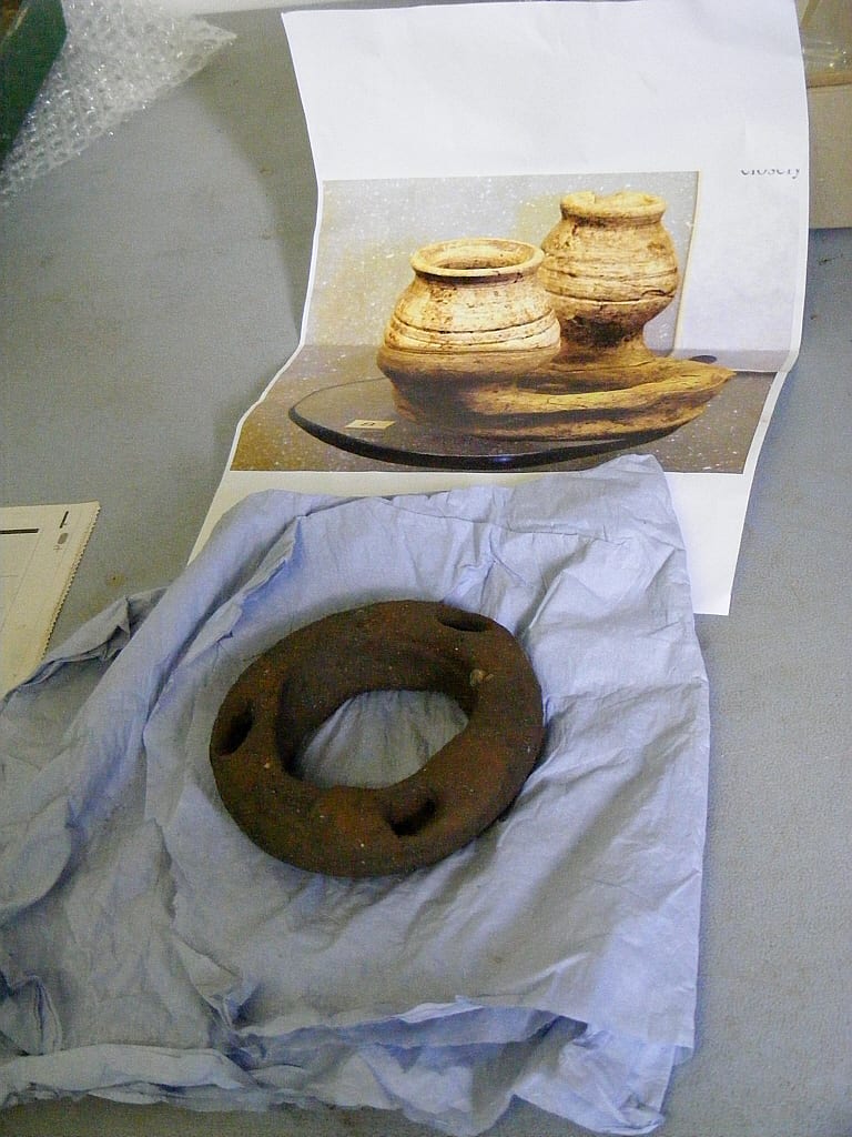 At the southern end of the site were the shallow foundations for a timber building. The purpose of this building is open to interpretation, although it could perhaps have served as a warehouse for the salt, and also as a home for the salt workers. A lot of pottery was found in this part of the site, suggesting that it had been a focus for domestic activity. The remains of metalling was exposed by the timber building, representing a road surface that would have connected to the main Roman road.