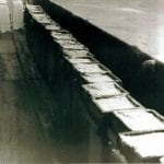 The salt was packed down with a wooden tool called a ‘mundling stick’; this ensures the lump is compacted to produce the correct weight. When the salt lump was drained, they were placed on the hurdles, (wooden floor), either side of the pan until two rows had been formed.
