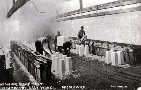 The growth of chemical industries created a whole range of new uses for salt and during the 19th and 20th centuries Middlewich became a centre of alkali and caustic soda production, as well as many other salt-related activities.