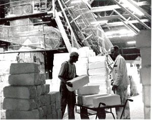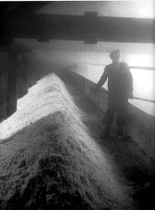 Feeding the lump crushing mill 1965-6. The salt is crushed up ready to be bagged up. Murgatroyd’s. George Twigg ©