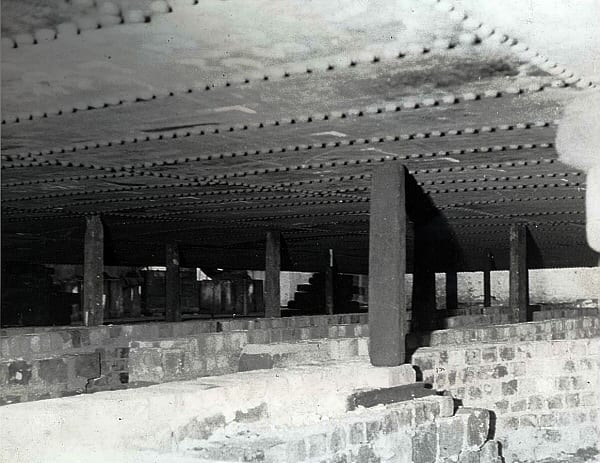 Low grade coal called ‘slack,’ was used to fire the pans, the heat passed through the brick flue system that runs under the pan. The flues enable a pan to be heated evenly; the excess heat goes through the hot-house area before it reaches the chimney.