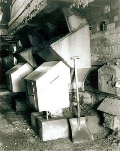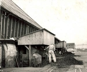 The lumps were turned out, loaded onto lump barrows and taken to the hot house where they stand on end in the ditches between the flues.