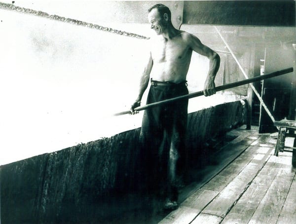 A Lofter moves the salt to the Dry Store, if they moved the lump any earlier the moisture would have weakened it and broken up as soon as the spike was used. Seddon’s. George Twigg ©