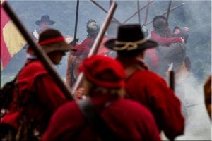 Lord Byron the experienced Loyalist Commander could see his forces were superior in number to the Parliamentarians and launched his attack. An hour of fierce fighting ensued, some of it hand to hand, as the parliament men held their ground. The smoke from the cannon and musket fire together with the deafening noise of cannons within feet of either side of the foot soldiers must have been horrific; there was no time to deal with the dead or dying on the ground between the opposing sides. Lord Byron’s Royalist men, although larger in number, could not breach the lines of soldiers behind the hedges and in the ditches so they withdrew to reform.