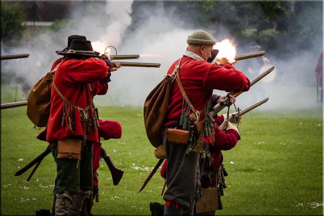 Lord Byron the experienced Loyalist Commander could see his forces were superior in number to the Parliamentarians and launched his attack. An hour of fierce fighting ensued, some of it hand to hand, as the parliament men held their ground. The smoke from the cannon and musket fire together with the deafening noise of cannons within feet of either side of the foot soldiers must have been horrific; there was no time to deal with the dead or dying on the ground between the opposing sides. Lord Byron’s Royalist men, although larger in number, could not breach the lines of soldiers behind the hedges and in the ditches so they withdrew to reform.