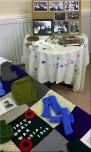Sewing and costumes – Research and a workshop on WWI outfits for events, lookied at sewing patterns of the day and the knitting patterns the local women of the time used to use for comforts for the troops. We also charity shopped and altered clothes for effect.Fabulous work by the Knit and Natter Group in Middlewich, who not only helped with costumes but made a whole display based on the work of the Red Cross for the October event.