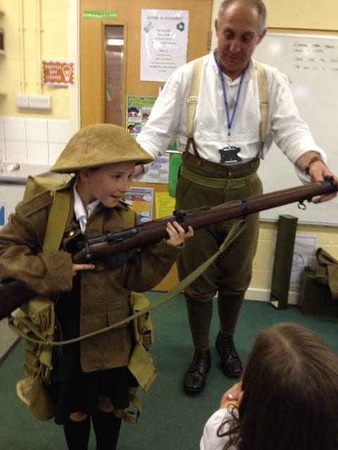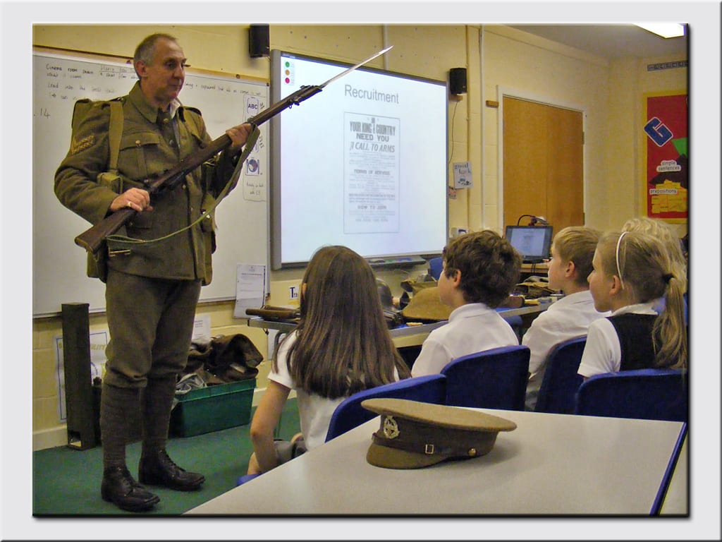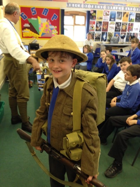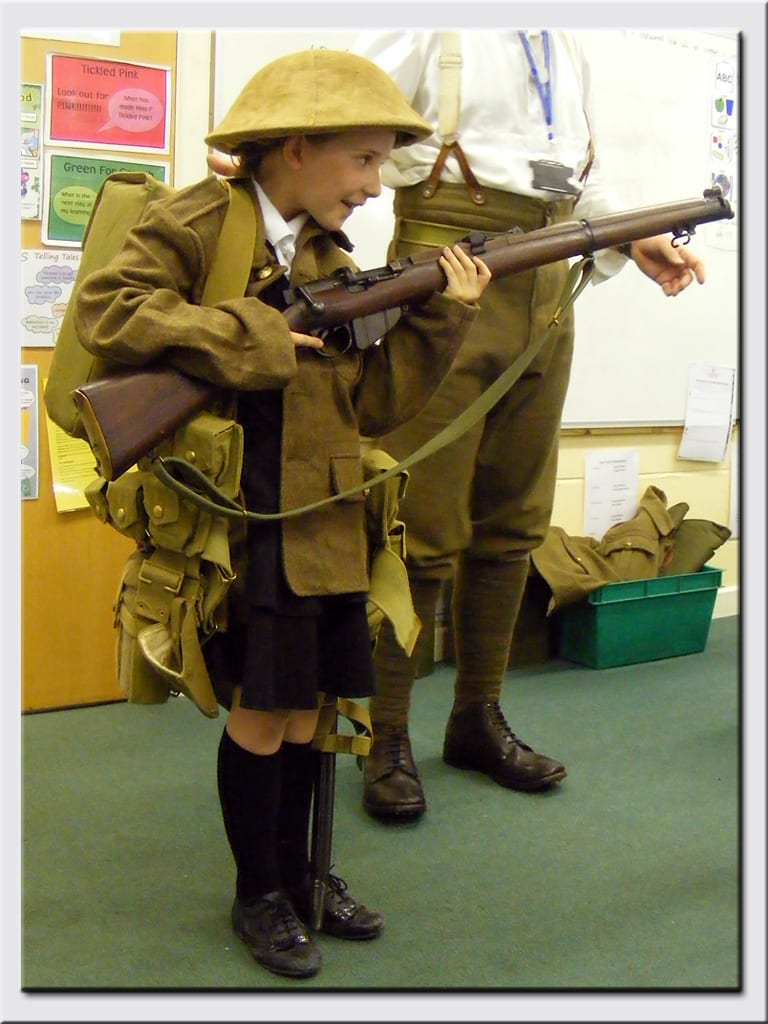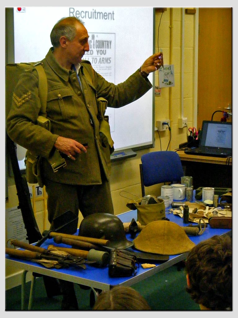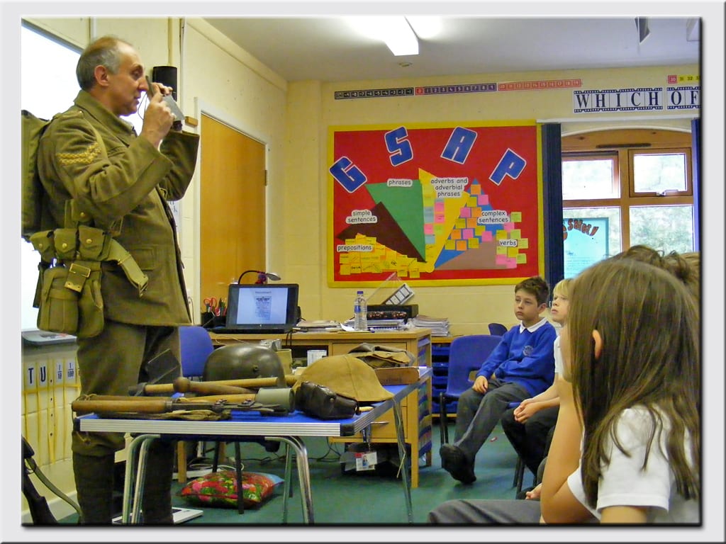 – A WWI soldier visits the primary schools complete with his kit ready to fight. Scott Knowles brings with him a special show and tell about what regiment he was in, the kit he is issued with and what it was like for some of the soldiers going to the trenches. A Unique look at the ‘tommy’ which allows the children to explore objects and the tommy questions about his life in the trenches.