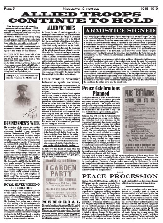 This Great Was Project will continue to collect information over the next four years. We are keen to know about Middlewich people serving in WWI and also wish to hear about today’s residents and families.