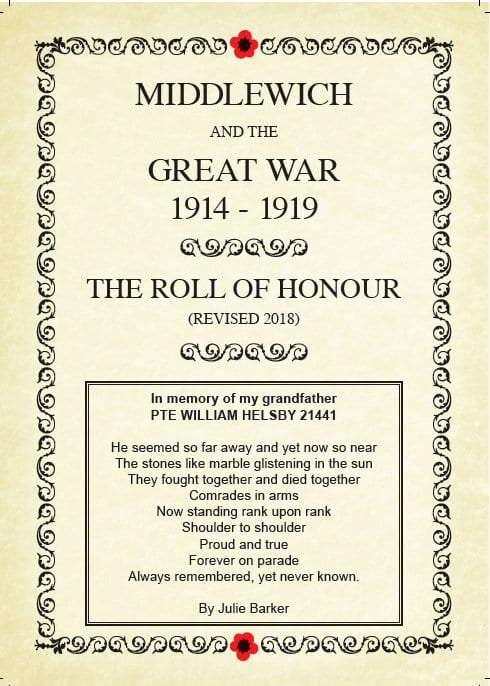 Research undertaken during the lead up to the 2018 Commemoration showed that the names of fourteen Middlewich men, who had died as a result of their service during the war, had been missed from the war memorial and the Roll of Honour.
