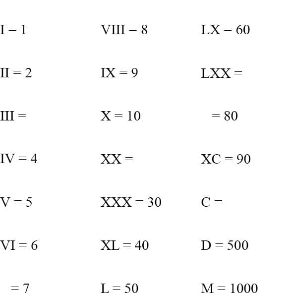 Aim: to practise using Roman numerals. To see that Roman numerals are still used today.