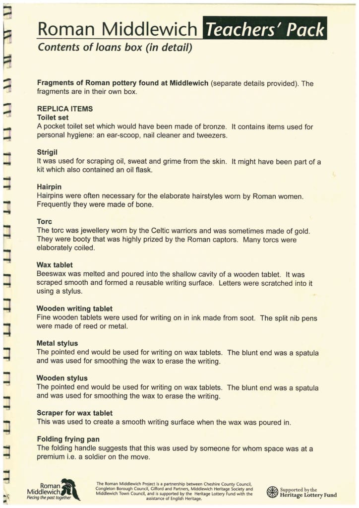 On this page you will find links to a Teacher’s Pack in the form of two pdf’s. You can download from the links. You can also look at the Roman Resource Box which is available to loan.